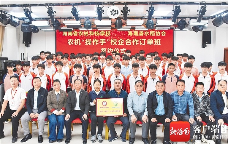 那是一张海南省农林科技学校与海南省水稻协会关于农机“操作手”校企合作订单班签约仪式的合影。照片中,学员们朝气蓬勃,青春的面庞泛着光晕。