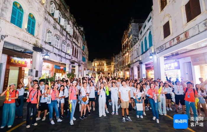 华裔青少年打卡海口骑楼老街。海口市旅文局供图