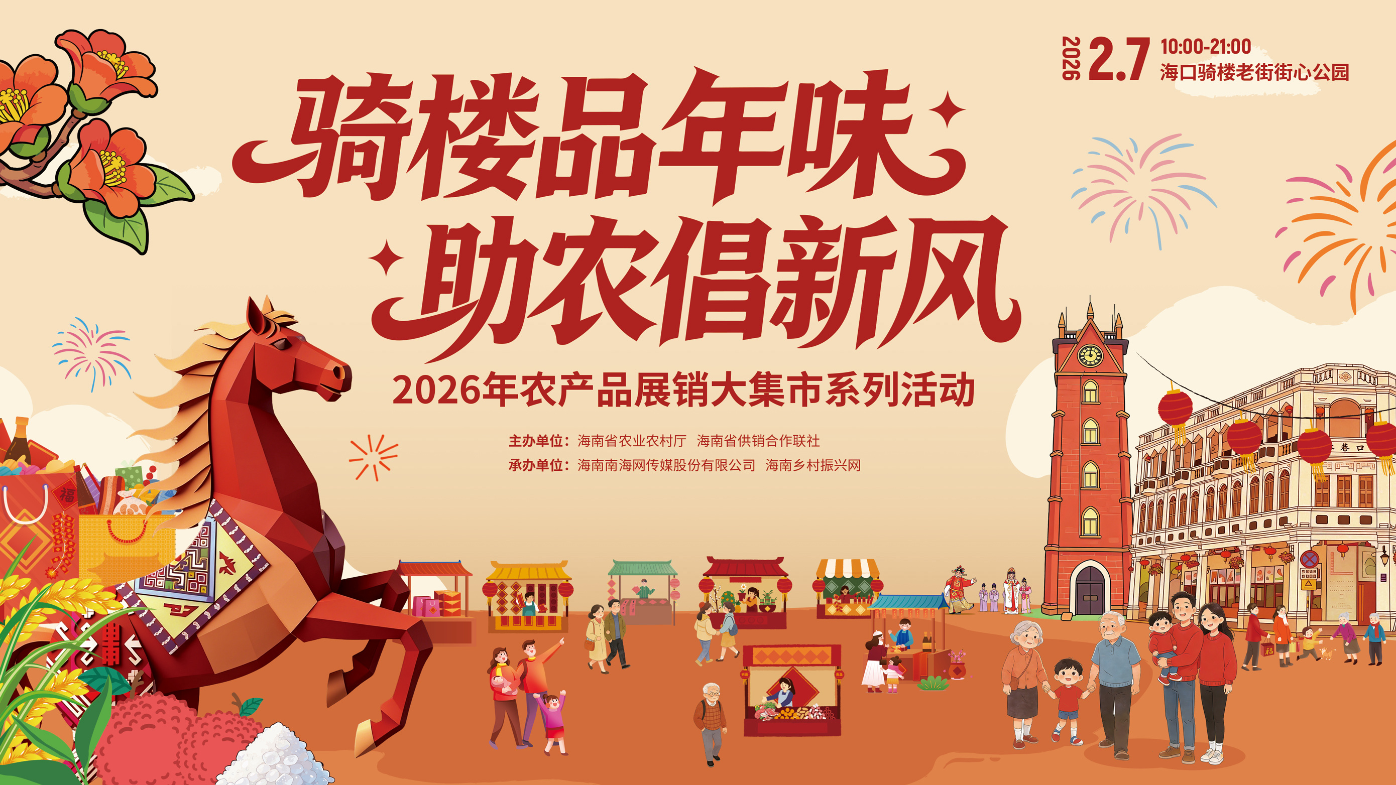 南海网、新海南客户端2月4日消息(记者 易帆)年味渐浓,您家的年货都办齐了吗?“骑楼品年味 助农倡新风”2026年农产品展销大集市迎新春专场,将于2月7日(周六)10:00-21:00在海口骑楼老街街心公园热闹开市,本场集市将汇聚海南近百种“土特产”靓货,一起来办年货吧。