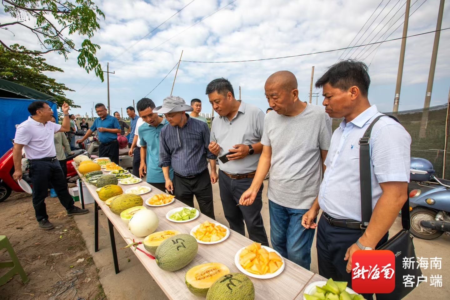 与会嘉宾品鉴西甜瓜。三亚市热带农业科学研究院供图