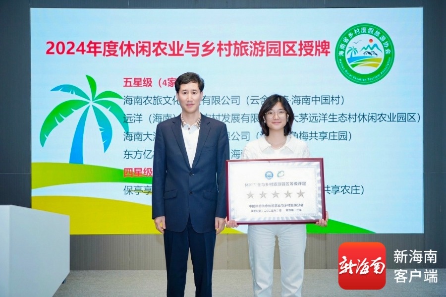 中国旅游协会乡村旅游分会为2024至2025年度全国星级休闲农业与乡村旅游园区授牌,其中云舍松涛·海南中国村等4家单位获评五星级,雅布伦·享水谷共享农庄等2家单位获评四星级,为行业树立品质标杆。