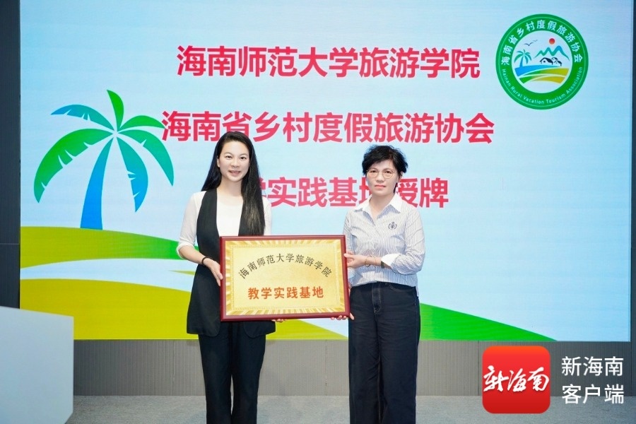在授牌环节,海南师范大学旅游学院向海南省乡村度假旅游协会授予“教学实践基地”牌匾,进一步深化校行企三方合作,搭建人才培养与实践就业的桥梁,为行业输送专业人才提供支撑。