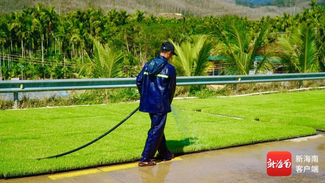 南海网、新海南客户端2月10日消息(记者 余育桑)春节将至,海南五指山番阳镇的育秧基地里,农忙气息正浓,基地负责人邢海涛手持水管,专注地浇灌着上周培育的秧苗。水珠在嫩绿的秧苗上跳跃,折射出晶莹的光芒。