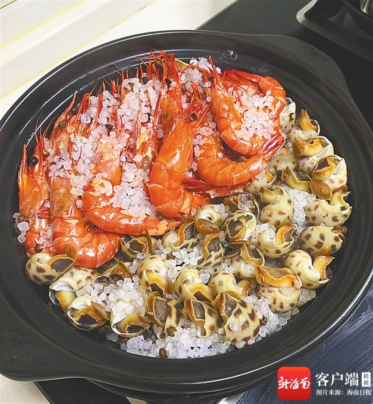 盐焗花螺海虾。海南日报全媒体记者 欧英才 通讯员 王基精 摄