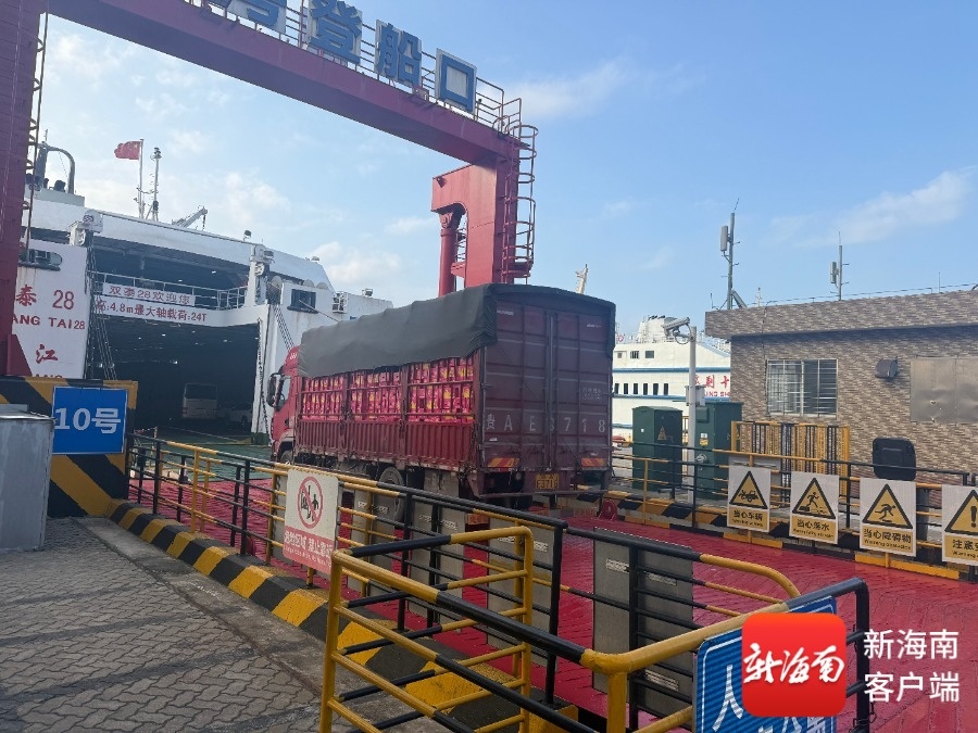 满载海南热带瓜果的运货车辆从海口新海港登船渡海。记者 王子遥 摄