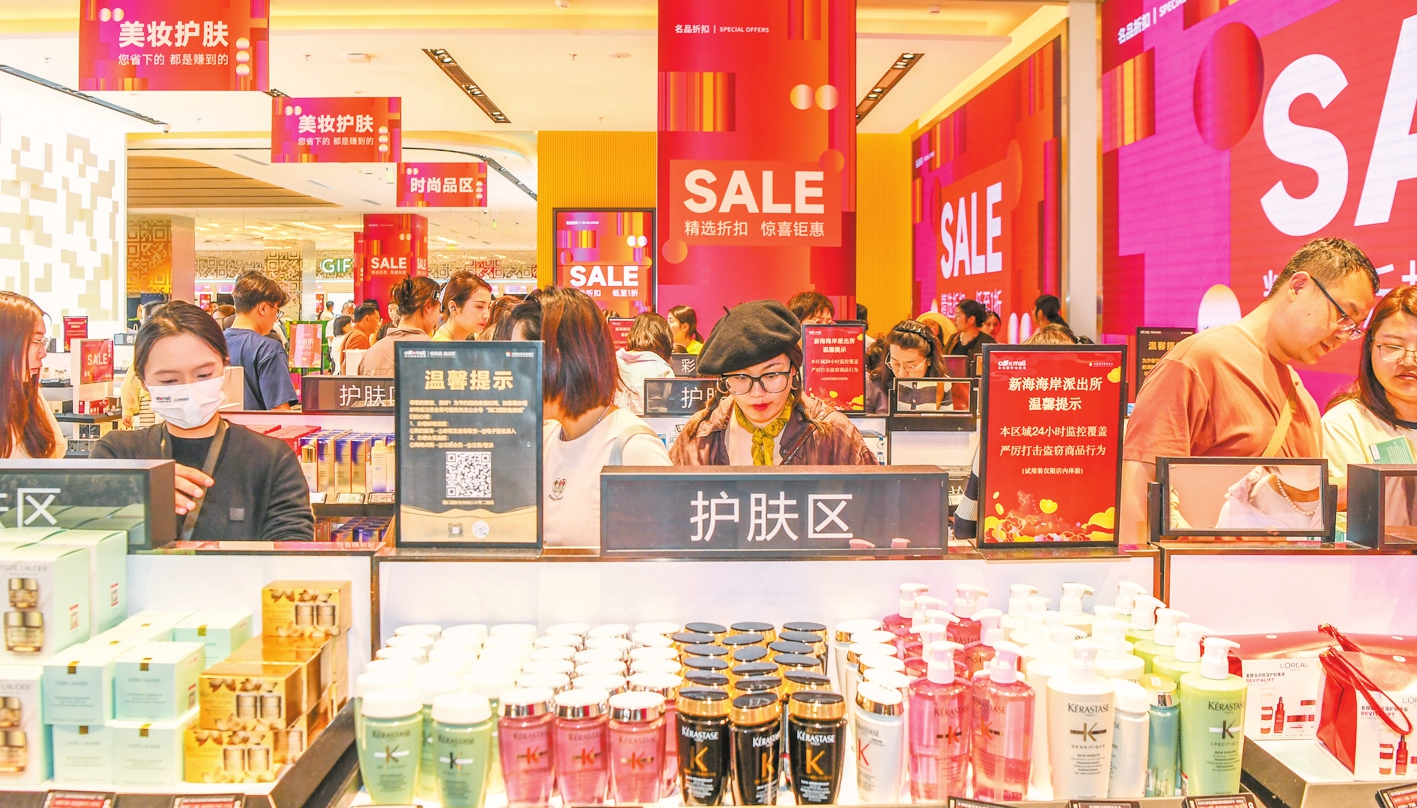 “麻烦再给我拿一瓶精华油。”在海蓝之谜专柜前,来自湖南的游客李晓雯正忙着核对购物清单,身旁已放着几个购物袋。“这次来旅游我做足了攻略,春节免税折扣加上政府消费券,比平时购物划算太多了。”李晓雯告诉记者,“给我爸买了最新款手机,给我妈囤了护肤品,还给闺蜜挑了Qeelin(麒麟)项链当新年礼物,一站式买齐全球好物,太省心了。”