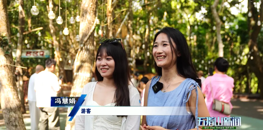 游客冯慧娟:这边的美食真的很好吃,像五指山野菜、五脚猪等特色美食,我们刚刚中午去吃了,确实是挺美味的,这边的人民也非常热情,比较好客。