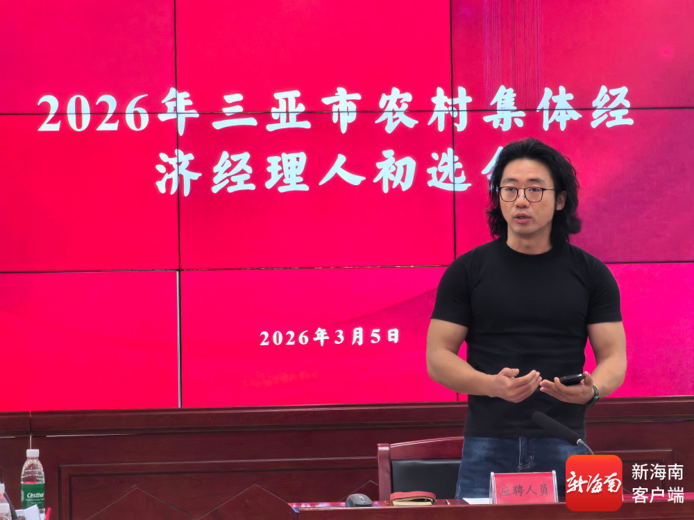 南海网、新海南客户端3月5日消息(记者 利声富)誓言铿锵激荡乡村热土,思路创新擘画振兴蓝图。3月5日,三亚市农村集体经济经理人(乡村CEO)招募初选会火热开启,17位精英候选人依次登台亮相,以饱满激情、精准思路登台演讲,面向评委亮出专属乡村发展方案,为洪李村、水蛟村、红花村、崖城村、那受村5个村庄的振兴之路献计献策、竞逐担当。
