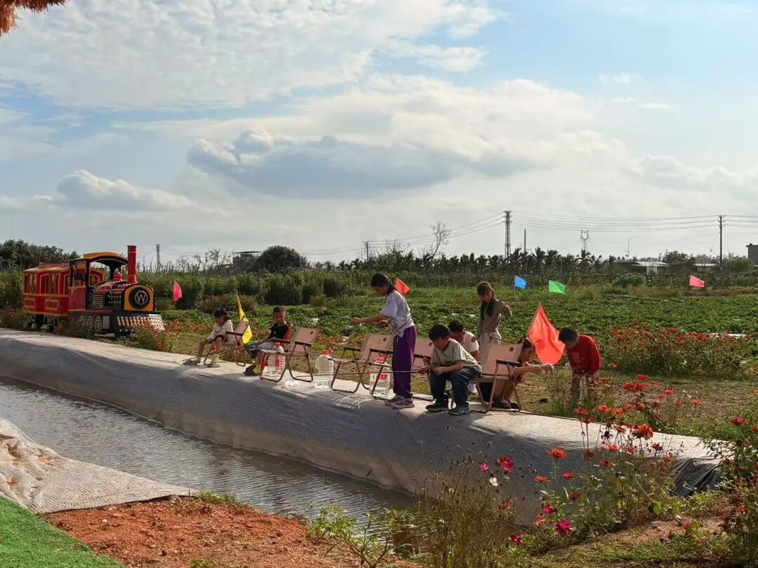 除特色采摘与萌宠互动外,潭牛生态园不断完善休闲配套设施,打造围炉煮茶、田园垂钓、儿童游乐、网红小火车等多元体验项目。游客既可在田园风光中静坐品茗、休闲放松,也可在垂钓区静享悠然时光,还能陪伴孩子在游乐区域尽情嬉戏,满足不同群体的休闲游玩需求,实现一站式田园休闲度假体验。