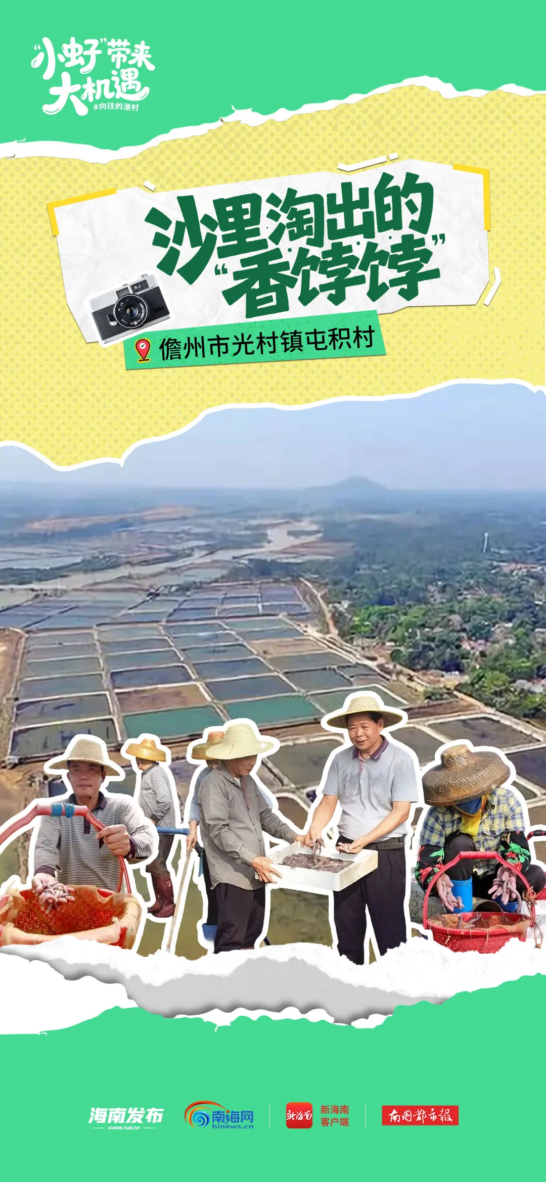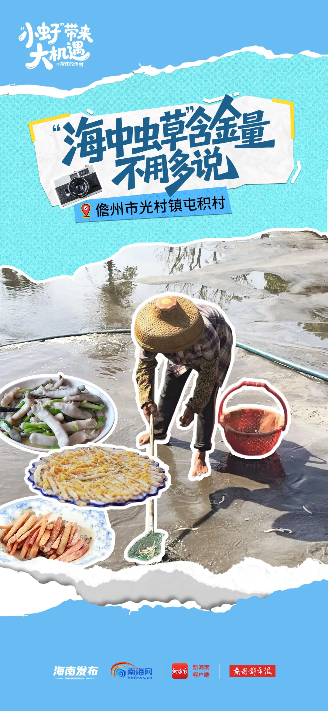 屯积村位于儋州市光村镇,地处榕桥江入海口,依托光村湾的滩涂资源,一直以来便以盛产天然沙虫而闻名,深受本地百姓喜爱。
