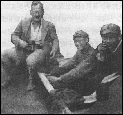 1937年,美国记者斯诺(左)和布鲁(右)在延安。