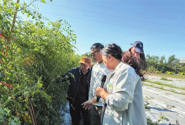 “大家仔细看,这边是嫁接苗,那边是自根苗,挂果率、品质差别非常明显,这就是科技育苗的优势!”示范基地内,技术人员的讲解直击重点,一串串三色圣女果挂满枝头,成为最直观的增产示范样本。参会人员纷纷俯身察看,触摸叶片、观察根系、清点挂果量,不时拍照记录、交流心得,深入探寻嫁接苗的增产奥秘。