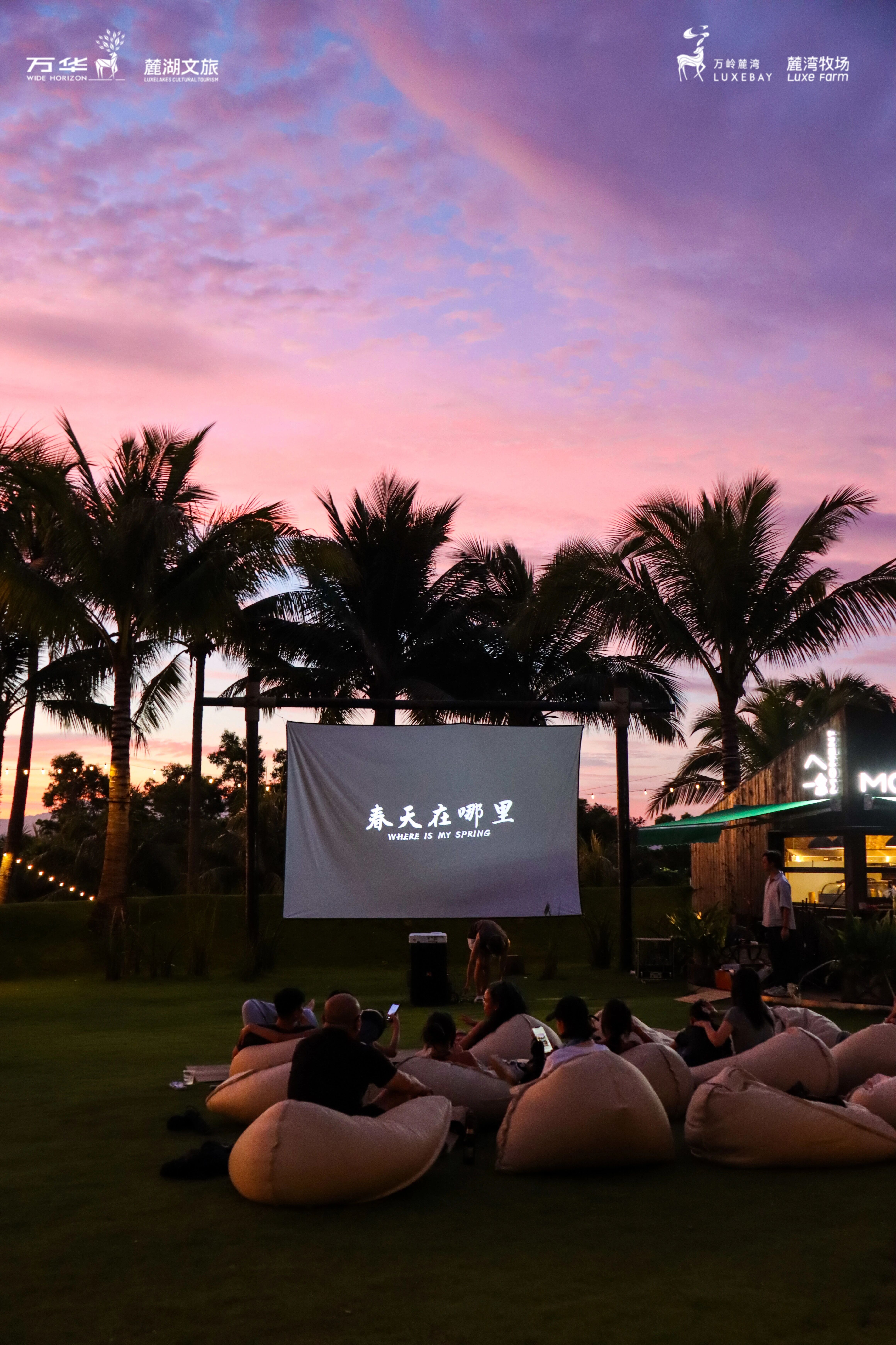 孩子们可以在牧场小主人研学营里探索,在大草坪上奔跑,看大白鹅摇摇摆摆地散步;大人们则可以在颂钵音疗中闭上眼,把倦意交给春风。到了晚上,星空下的露天电影亮起,一家人窝在椅子上,吹着微凉的晚风,看着幕布上的光影流动。这样的夜晚,大概会留在记忆里很久很久。