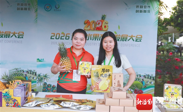 3月23日下午,参展企业携多款海南特色农产品亮相2026年热带水果产业发展大会。