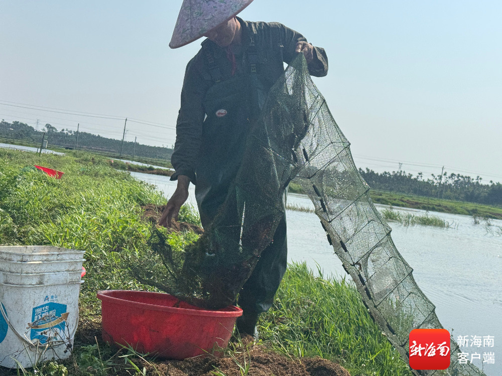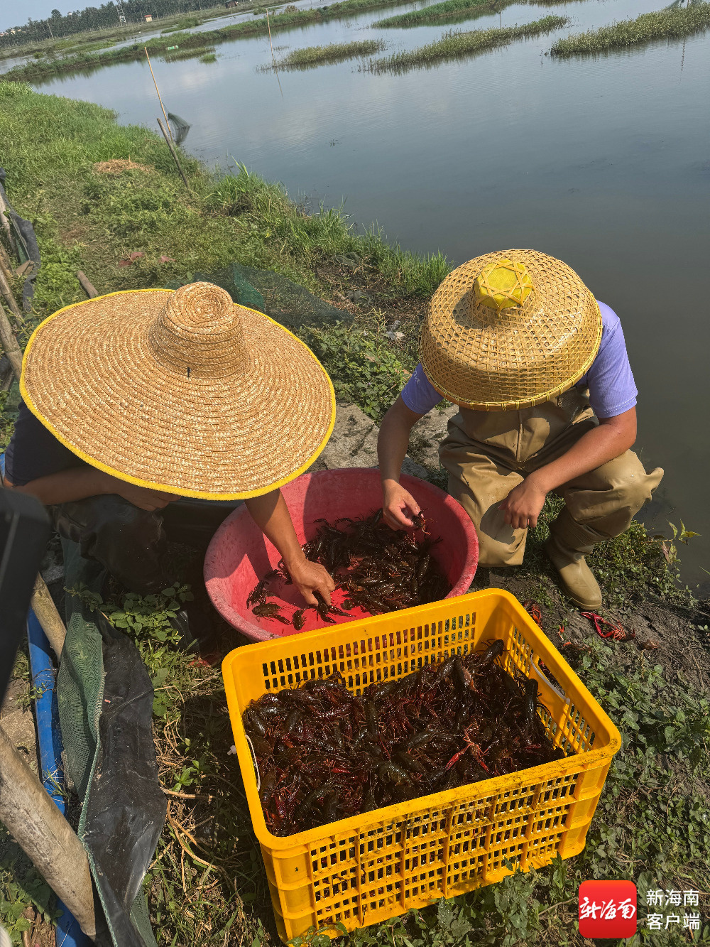 在同一片池塘里,夏季种稻、冬季养虾,这样稻虾轮作的综合种养模式已经成为海南农民增收的新路子。这是马源潮在海口养殖小龙虾的第3个年头,从一开始的试验养殖摸索养殖和市场经验,到如今基地发展至一千余亩,马源潮充满信心。今年在海南虾产业技术体系专家的帮助下,基地探索从刚孵化出的小龙虾幼虾(俗称“水花苗”)开始,通过人工培育至可投放的大规格虾苗(通常4–6厘米),通过这样的越来越成熟的“水花苗养殖模式”技术,让基地的虾苗成活率更高,品质更好。“今年我们也在专家的指导下筛选出更适合本地养殖的品种,炮头虾的占比超过50%,效益很好。”马源潮说。