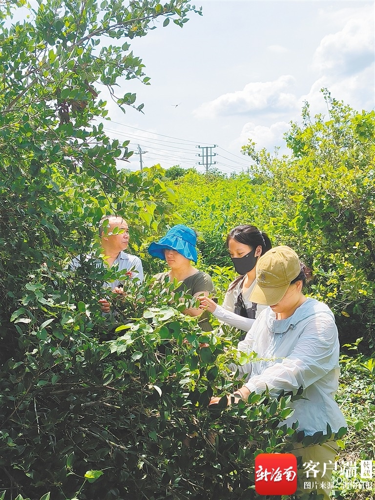 在导师指导下,海南大学研究生在海口油茶基地采集样品。受访者供图