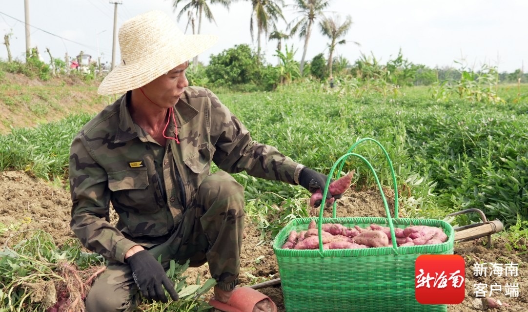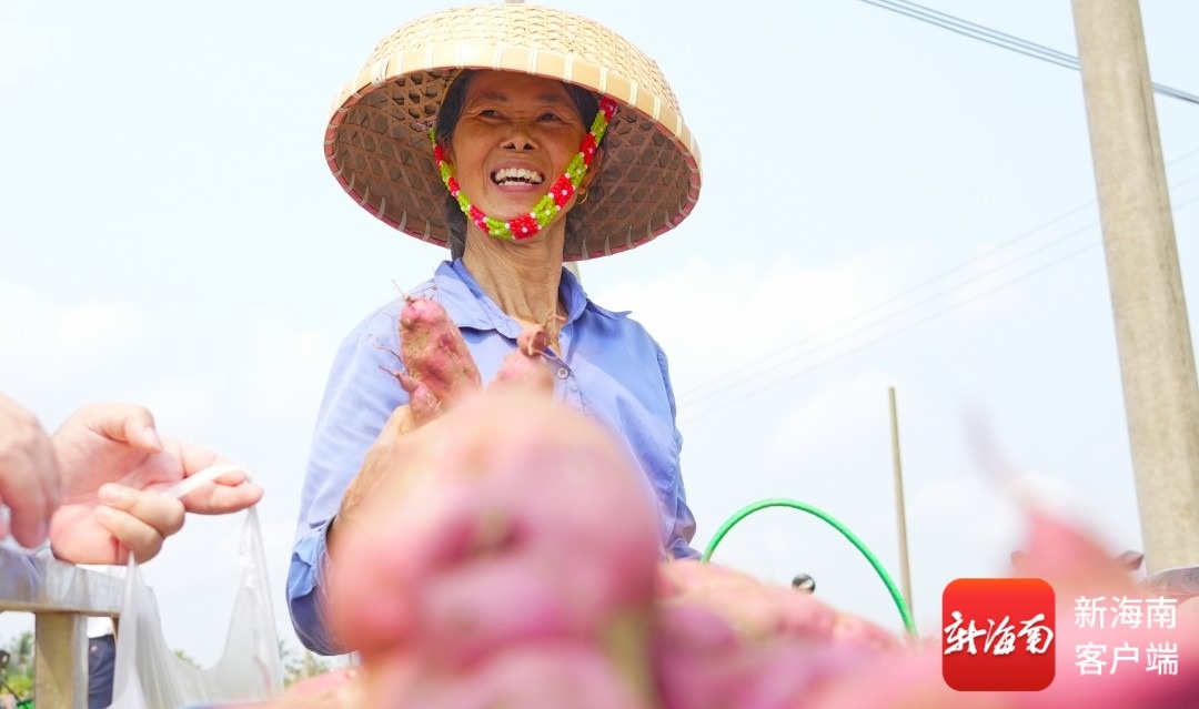 海口美兰区演西村三角宁地瓜丰收村民脸上满是丰收的喜悦。记者 汪承贤 摄