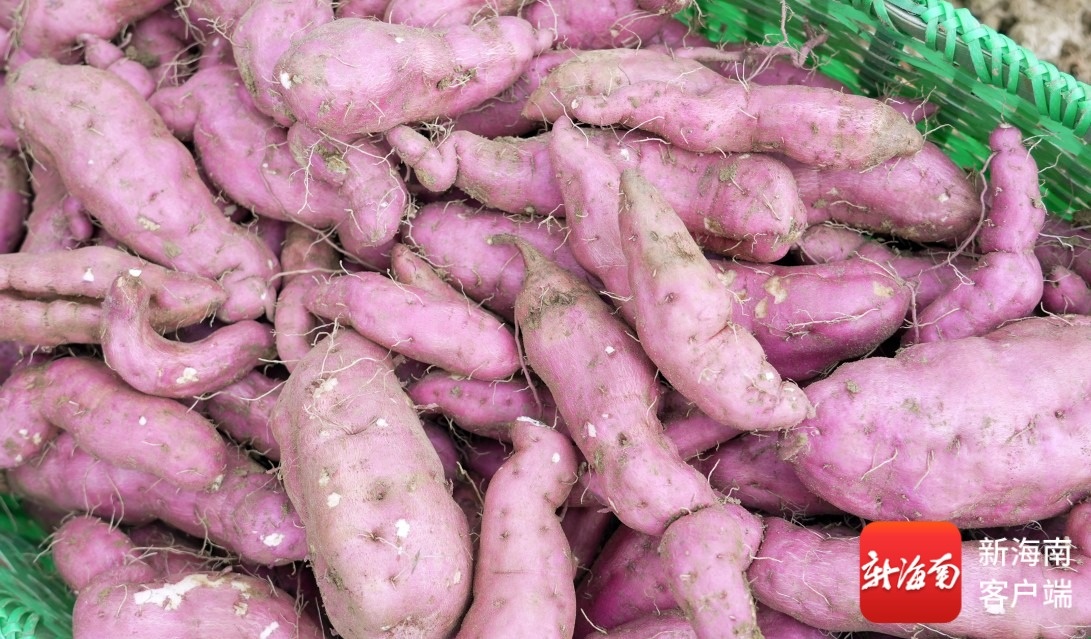 演丰镇农业服务中心主任王定伟介绍,今年全村480亩三角宁地瓜迎来丰产,亩产1500-1800斤,总产量约50万斤,比往年增产10%-20%。得益于东寨港红树林周边的独特生态,这里的土地是盐碱化黑土地,有机质含量高,种出的地瓜自带咸甜风味,蒸煮时无需加盐就有些许清爽的咸味,口感粉糯香甜,还富含硒元素,营养十分丰富。