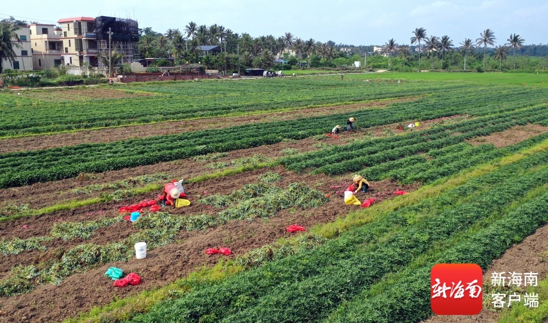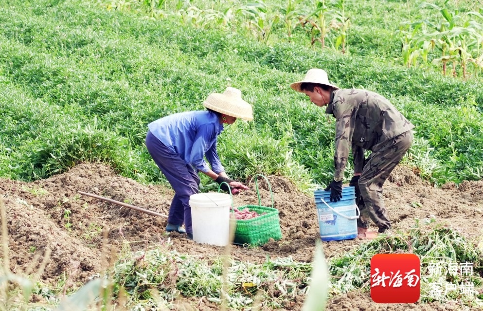 海口市美兰区演丰镇演西村的田间地头一片热闹,100多户村民正忙着开挖半咸水三角宁地瓜。记者 汪承贤 摄