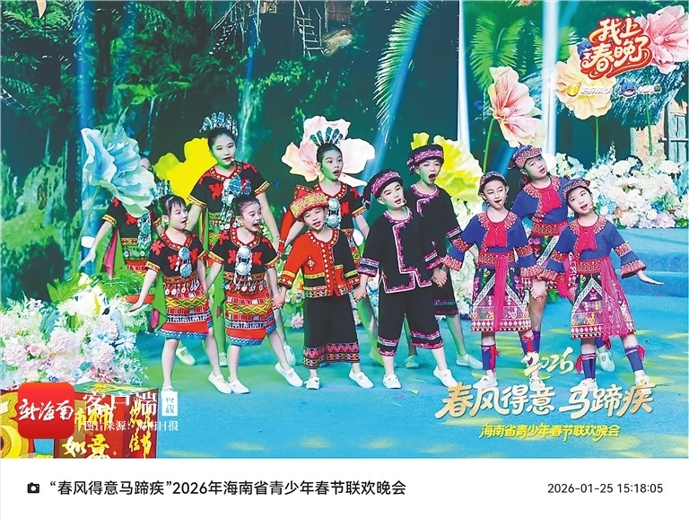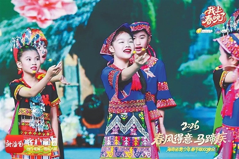 五指山市雨林童声合唱团成员参加2026海南省青少年春节联欢晚会。图片由受访者提供