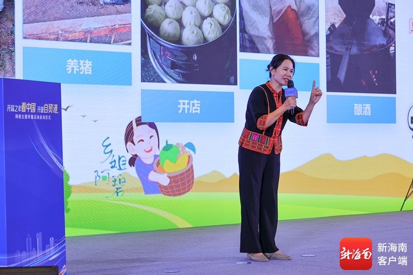 4月12日,在“开局之年看中国·开放自贸港”网络主题传播活动启动仪式上,海南农业网络达人江碧珍分享自己的经历。主办方供图