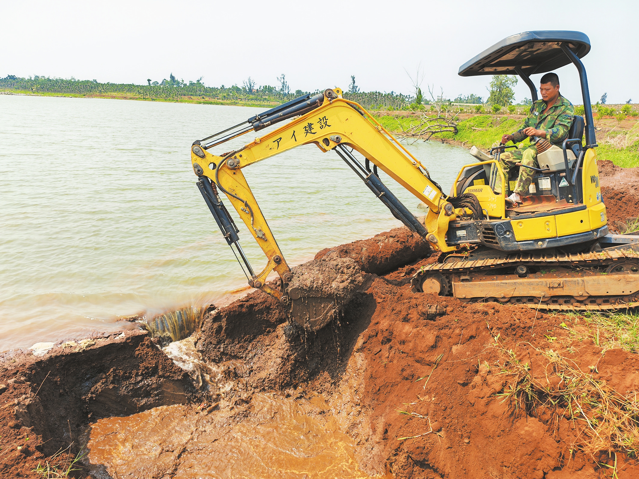海口日报4月12日讯(记者李欣 特约记者许晶亮)4月10日,在琼山区红旗镇北林洋与龙坡水库灌溉渠沿线,一场抗旱保灌攻坚战有序展开。挖掘机长臂挥舞,破土清淤;镇村干部与群众并肩作战,疏通渠道。随着最后一段淤泥杂草被清除,水源顺着畅通的渠道,源源不断地流入2700亩琼山福稻种植区的田间。