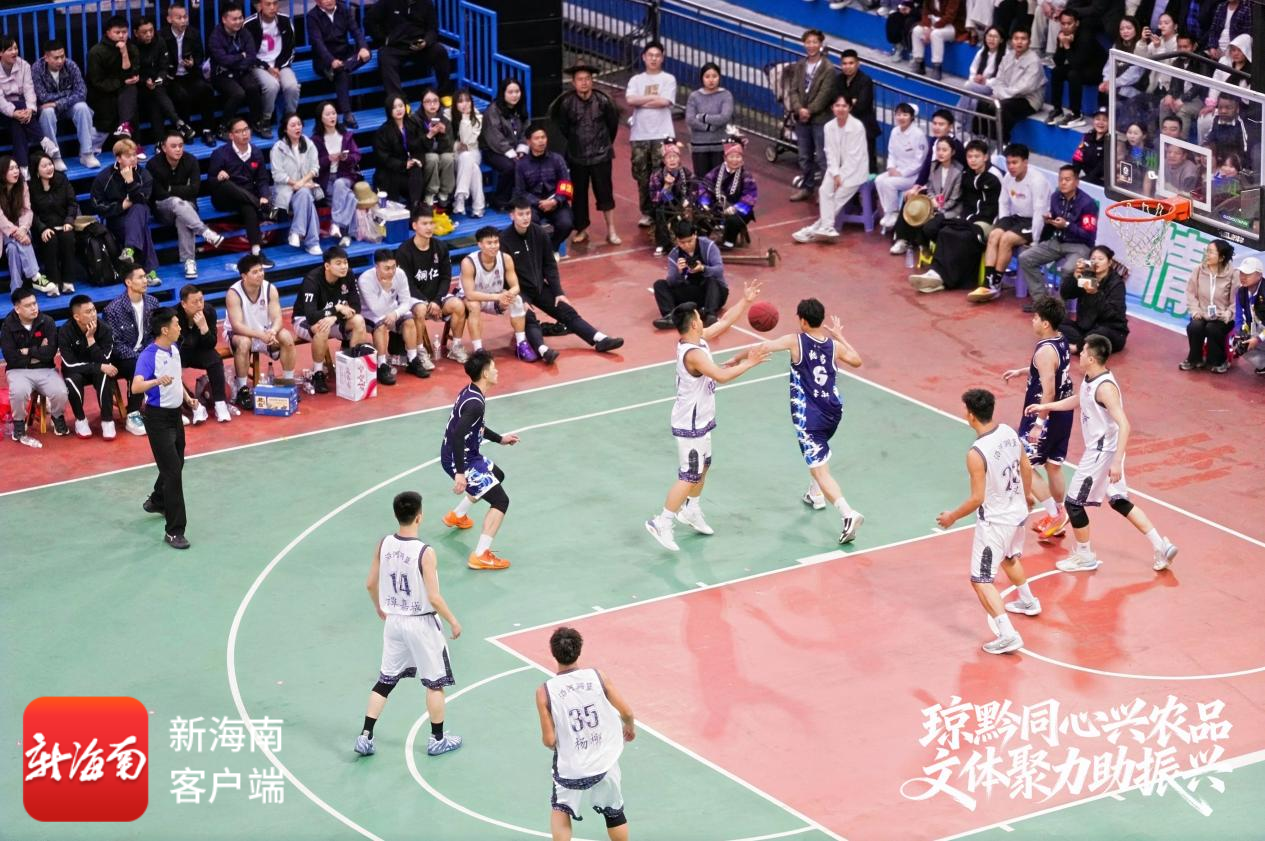 首届乡村三大球运动会篮球项目赛事开赛,琼黔两省运动健儿交流。(受访者供图)