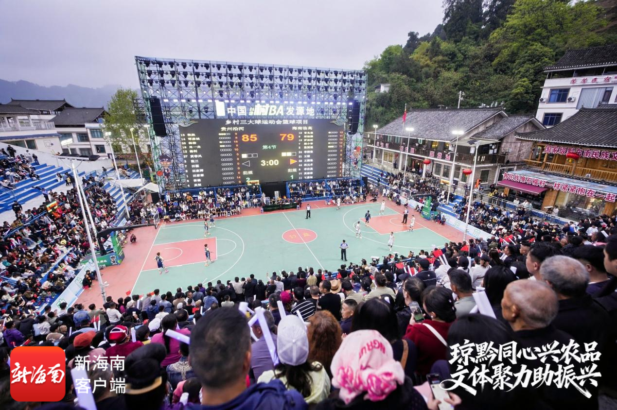 当天晚上,首届乡村三大球运动会篮球项目赛事在“村BA”发源地贵州省台江县台盘村火热开赛。海南澄迈县和临高县代表队出征赛场,与贵州省第四届“美丽乡村”篮球联赛冠亚军凯里市和沿河县代表队运动健儿同场竞技、共话友谊。