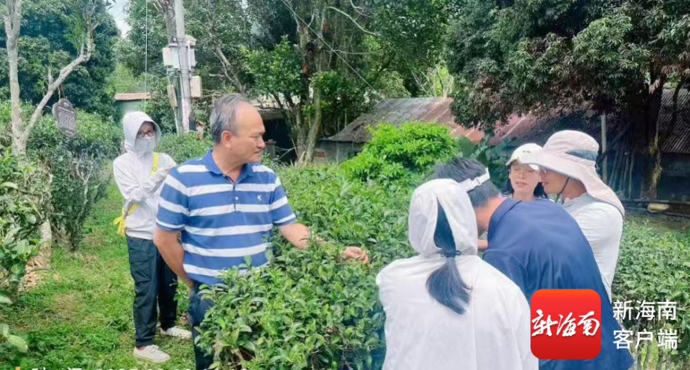 五指山市生态科技特派员与省农科院专家赴水满乡调研茶叶生产及病虫害防控。