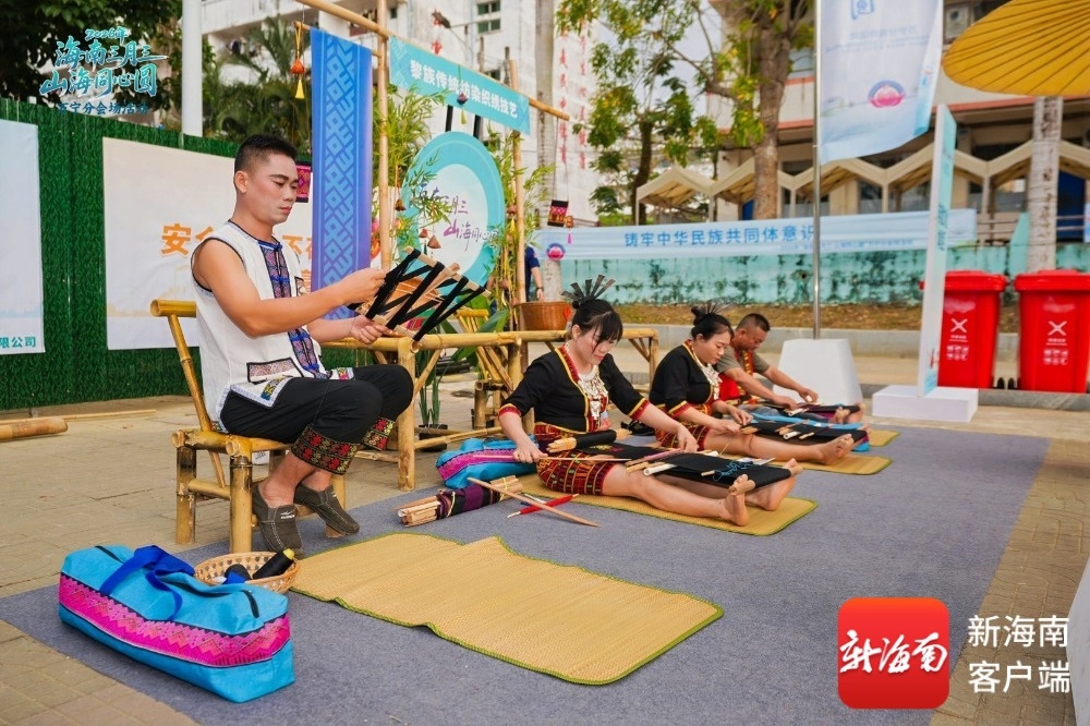 “三月三”活动是多民族文化交融的重要载体。长丰镇文通村等少数民族村寨,保留着黎锦织造、竹竿舞、山兰酒酿造等非遗技艺,是民族文化的“活化石”。