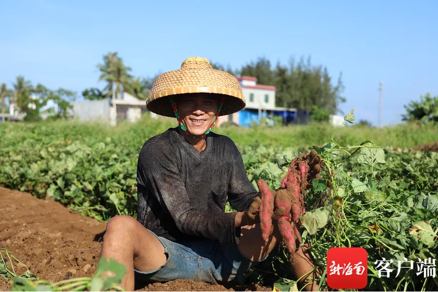 澄迈县桥头镇沙土村民喜悦丰收。记者 林鸿羽 摄